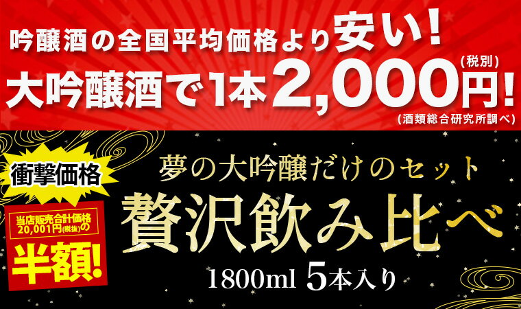 クーポン配布中 【50%OFF 日本酒 大吟醸 飲み比べセット 1800ml 5本セット 第8弾】のし可能 福袋 一升瓶 1.8L 送料無料 まとめ買い 清酒 SAKE Japanese Rice Wine ミツワ 日本酒セット ギフト 結婚式 祝い 辛口 父 祖父 男性 40代 50代 60代 人気