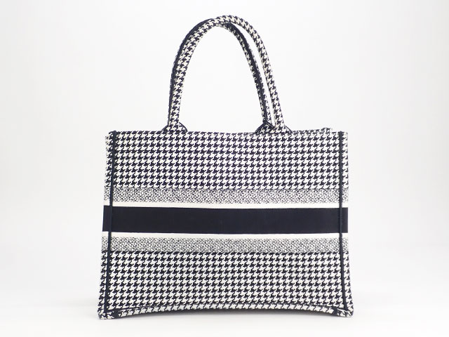 【中古】【辛口評価】【Aランク】Christian Dior クリスチャン ディオール ブックトート スモールバッグ ハウンドトゥース エンブロイダリー トートバッグ M1296ZRPI_M081 千鳥格子柄 ブラック ホワイト